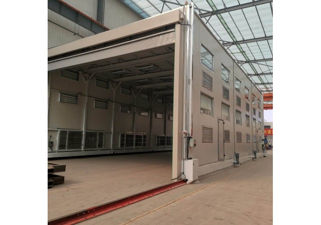 龍門(mén)移動(dòng)式噴漆間是本公司為解決重型工件移動(dòng)困難及工作區(qū)可連續(xù)交叉作業(yè)的綜合利用而專(zhuān)門(mén)設(shè)計(jì)的實(shí)用性產(chǎn)品。解決了一般固定式噴漆間重型工件移入移出繁瑣的工序。工件噴漆前首先通過(guò)啟動(dòng)預(yù)定程序?qū)⒎矿w移動(dòng)至噴漆場(chǎng)地,罩住工件后即可進(jìn)行噴漆作業(yè),如此設(shè)計(jì)可以實(shí)現(xiàn)大型工件的不間斷連續(xù)噴漆工作。